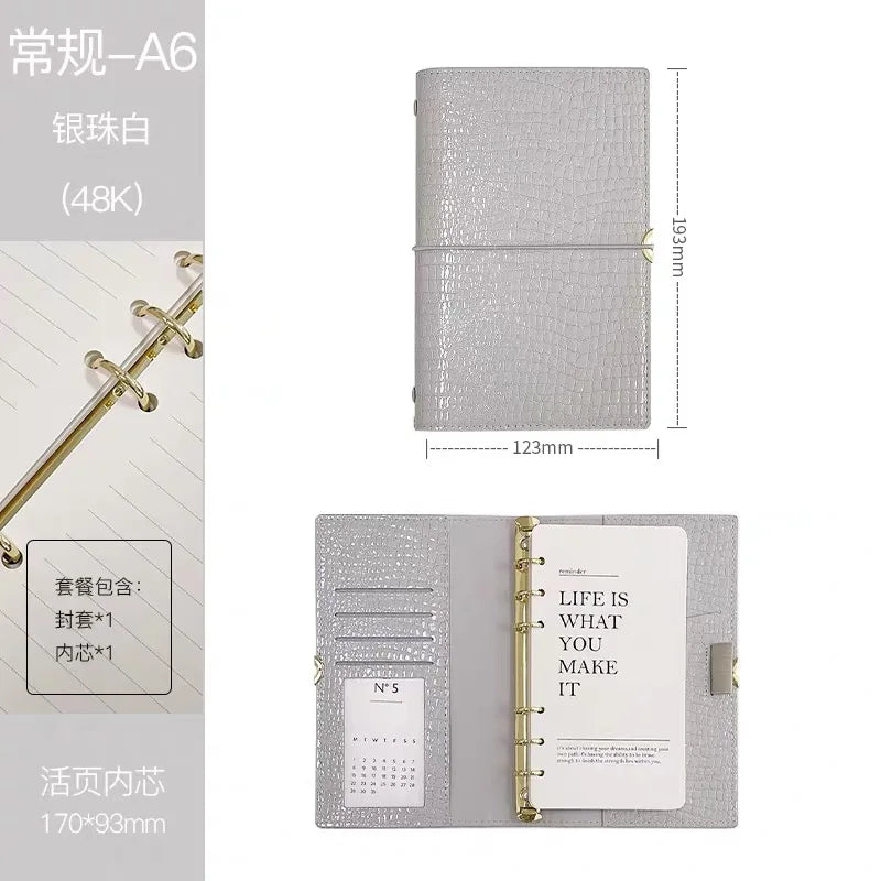 A6/M5 Crocodile skin Loose-leaf Journal Notebook Original multi-function Binder Office Business Diary Planner Organizer Notepad